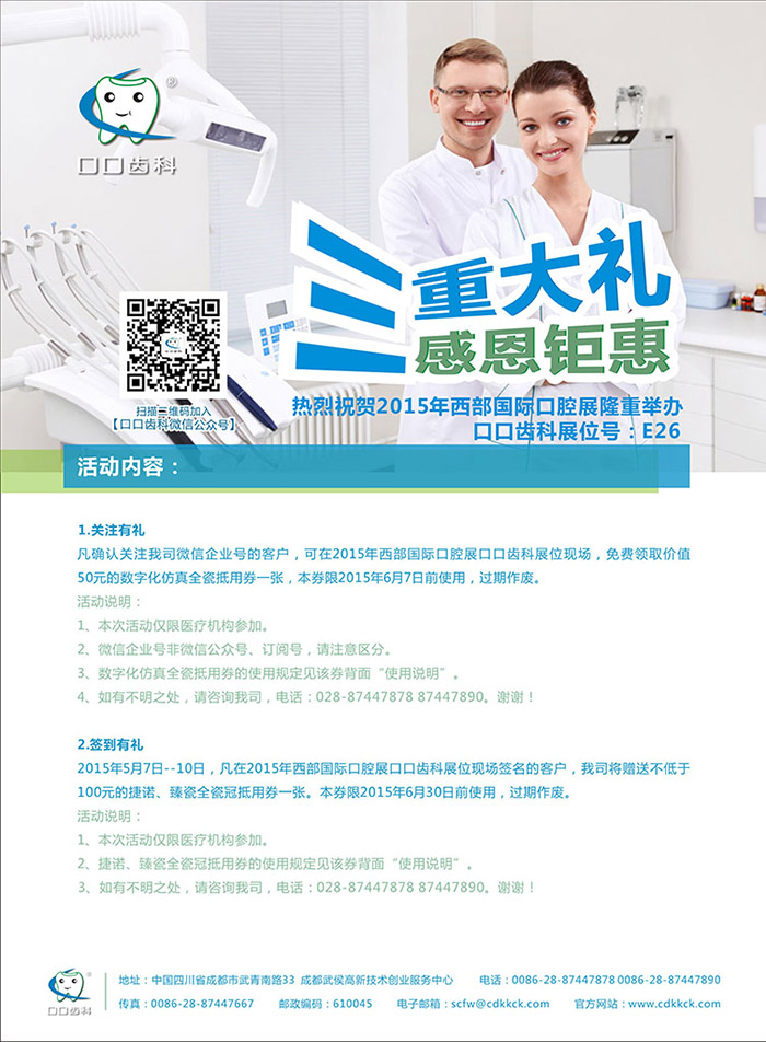 2015西部国际口腔展 口口齿科三重大礼